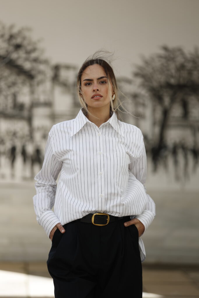 Elle oscille entre pièces fortes et n’hésite pas à détourner des pièces du dressing masculin. Hautement féminine, aucun détail n’est laissé au hasard. Son look est une armure au quotidien, voué à définir qui elle est sans avoir à se justifier, révélant sa douceur et sa force d’un coup de look…